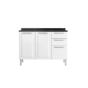 Estilo Clean e Moderno: Acabamento Branco Semi-Brilho com tampo de 25mm revestido em fórmica.