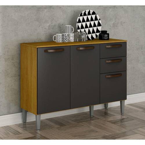 Balcão de Cozinha 3 Portas 2 Gavetas - Maísa-Cinamomo/Grafite - CHF Móveis