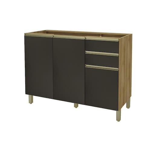 O Balcão de Cozinha 3 Portas 2 Gavetas Sem Tampo 120 cm Star da Indekes reúne características decorativas e práticas em seu design! O espaço interno, que vem com prateleiras e divisória, é ótimo para organização dos utensílios e mantimentos.