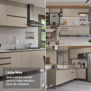 O Balcão Gaveteiro com três gavetas espaçosas oferece ótimo espaço para manter tudo sempre à mão. O destaque fica por conta da última gaveta, que possui maior profundidade, ideal para acomodar itens mais volumosos. As corrediças com abertura total garantem fácil acesso e deslizamento suave em todas as gavetas, proporcionando mais funcionalidade no dia a dia.