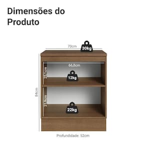 O Balcão de 70 cm da Linha Vik da Madesa, com duas portas, oferece amplo espaço interno para manter sua cozinha organizada com praticidade e estilo.