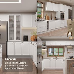 Além de trazer elegância, a linha Vik é funcional em cada detalhe. As portas possuem dobradiças com amortecimento, garantindo um fechamento suave e silencioso. Cada detalhe foi pensado para tornar sua casa mais elegante e funcional.