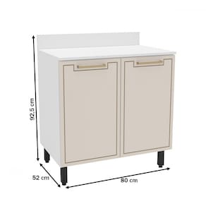 O(a) Balcão de Cozinha 80 Cm Amara 2 Portas Branco/Creme - Politorno é produzido em MDF e MDP na escala de brilho Semi-Fosco, e possui um grau de dificuldade de montagem: Médio.