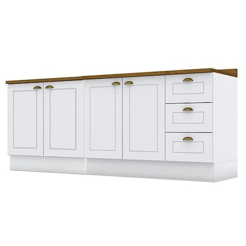 Balcão de Cozinha 120 cm Americana Branco com Tampo Nature – Henn