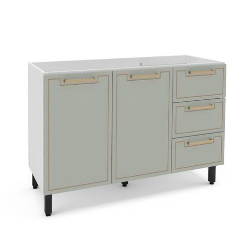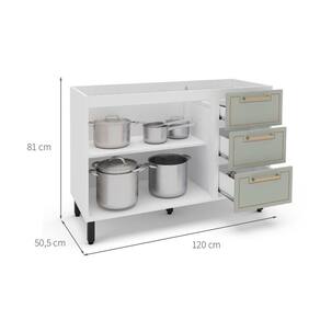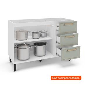 Balcão de Cozinha Amara sem Tampo 2 Portas 3 Gavetas Verde e Branco
