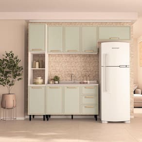 Que tal o Balcão de Cozinha Amara? Bons móveis de cozinha, além de deixarem o cômodo mais bonito, precisam nos ajudar a ter uma rotina prática, não é? Unindo funcionalidade e bom gosto, o Balcão Amara tem ótimo espaço interno para você armazenar utensílios, potes ou outros itens necessários ao uso diário - organização não vai faltar no seu cantinho. De visual clássico e charmoso, ele combina facilmente com outros módulos de cozinha que você precisar, como armários aéreos e paneleiros. Completo para o dia a dia :)