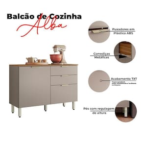 Balcão de Cozinha Ambiente Alba 120cm Amêndola Nude Prime TX com Tampo - Demóbile