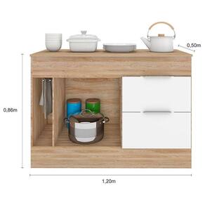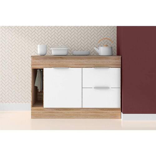 Balcão de Cozinha Ambiente Ferrara 120cm Carvalho OAK Branco – Poliman