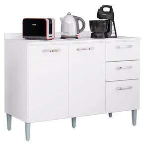 Apresentamos a você que procura por qualidade bom preço e um design moderno que irá lhe proporcionar praticidade na hora de organizar seus utensílios, o Balcão de Cozinha com Tampo da linha Lavínia na cor Branco conta com amplo espaço interno, pés reguláveis para facilitar seu dia a dia. Confira mais sobre esse lindo balcão abaixo: