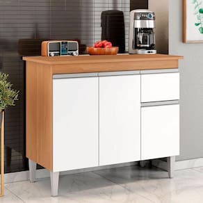 Balcão de Cozinha Ambiente Tatiane com Tampo 100cm Amêndoa Branco - AJL