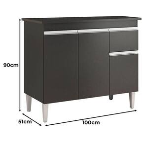 Balcão de Cozinha Ambiente Tatiane com Tampo 100cm Preto Fosco - AJL