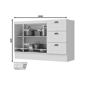 Dimensões(Cm): Comprimento(Profundidade): 51cm x Largura: 120cm x Altura: 82cm