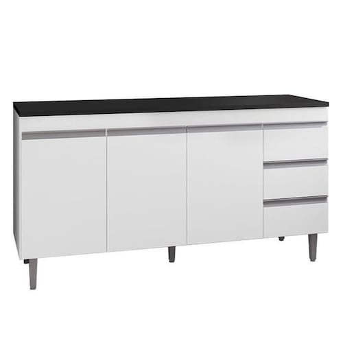 Balcão de Cozinha Andréia Branco com Tampo 150 cm Preto Fosco AJL