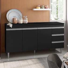 Balcão de Cozinha Andréia com Tampo 160 cm Preto Fosco – AJL