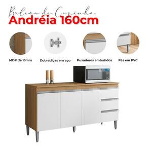 Balcão de Cozinha Andréia com Tampo 160cm Amêndoa Branco - AJL