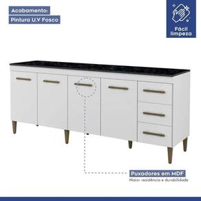 Transforme sua cozinha com o elegante Balcão de Cozinha Atenas! Com 4 portas e 3 gavetas, este móvel é feito em MDP de alta qualidade, com um acabamento em pintura UV semi-brilho que traz um toque sofisticado e moderno ao seu espaço. Seu design funcional e bonito não só otimiza a organização, mas também enriquece a estética da sua cozinha, tornando-a ainda mais acolhedora e prática. Não perca a oportunidade de dar um upgrade no seu ambiente com este lindo balcão!