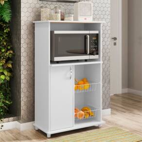Características: - MDP 12 e 15 mm - Cestos em aramado branco - Dobradiça Metal super Curva - Pintura UV brilho - 1 prateleira interna - Espaço para Micro-ondas - puxador em ABS metalizado - pés fixos em Polipropileno na cor do produto - Suporte de peso 28kg - Garantia de 03 meses