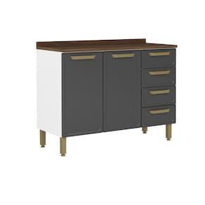 Balcão de Cozinha Bella c/ 2 Portas e 4 Gavetas c/ Tampo 120cm Grafite - Bertolini - Blush