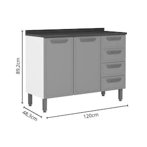 Balcão de Cozinha Bella c/ 2 Portas e 4 Gavetas c/ Tampo 120cm Grafite - Bertolini