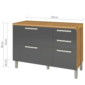 Transforme sua cozinha em um espaço elegante e funcional com o Balcão Burguesa Premium da Nesher. Com 120cm de comprimento, este balcão é a escolha perfeita para quem busca otimizar o espaço de trabalho na cozinha sem abrir mão do estilo. Fabricado com 100% MDF, este produto da linha Burguesa Premium apresenta uma combinação elegante das cores Freijó e Grafite, além de um acabamento de alta qualidade e durabilidade. Com 2 portas e 3 gavetas, este balcão oferece muito espaço para armazenar seus utensílios de cozinha e mantê-los organizados.