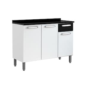 Balcão de Cozinha c/ Tampo Evidence 7122 c/ 3 Portas e 1 Gaveta 120cm Branco/Preto - Bertolini Marca: Bertolini