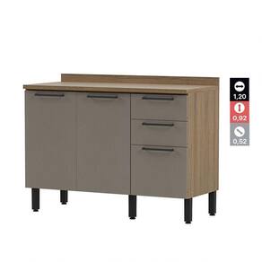 Material: O Balcão de Cozinha Caiena possui estrutura em MDP 15mm, portas articuladas com dobradiça metálica slow motion, gavetas com corrediça telescópica, pés em polipropileno e tampo em MDP 25mm