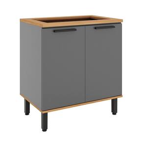 Balcão de Cozinha Castanha 800MM P/ Cooktop 5 Bocas C/ Tampo 2 Portas - Cinza/Freijó