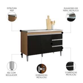 MDPEstá procurando um balcão compacto, prático e funcional para a sua cozinha? O Balcão de Cozinha Com Pia Inox 120cm 3 Gavetas Andréia Amêndoa/Preto, da AJL Móveis é perfeito!