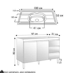 Conteúdo da Embalagem: 1 Balcão, 1 Pia.