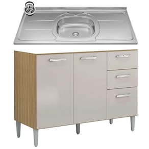Cor: DamascoOff White | Material: MDP | Model: Livy | Origem: | ProductHeight: 84 cm | SupplierSimpleName: Balcão de Cozinha com Pia Inox 120cm 3 Portas 2 Gavetas Livy P11 DamascoOff White - Mpozenato