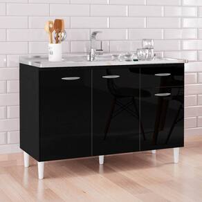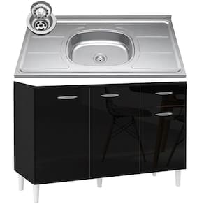 Procurando uma solução compacta para a cozinha que não economize no estilo? Conheça o Balcão de Cozinha com Pia Inox 120cm 3 Portas Classic P11 Preto, da Mpozenato!
