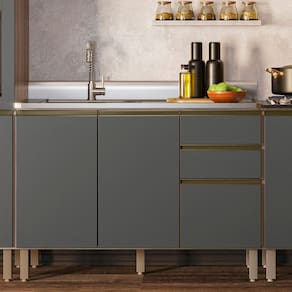 O Balcão de Cozinha oferece duas portas com dobradiças metálicas e amortecedores integrados, garantindo um fechamento suave e silencioso. Além disso, conta com três gavetas espaçosas, incluindo um gavetão, todas equipadas com corrediças metálicas telescópicas que proporcionam uma abertura e fechamento suaves. Os puxadores em alumínio adicionam um toque de sofisticação ao design do Balcão Gabinete, enquanto os pés em PVC reguláveis permitem o ajuste perfeito à altura desejada, assegurando estabilidade mesmo em pisos irregulares. O Balcão ainda acompanha uma pia inox 120cm, com cuba e válvula para auxiliar no preparo das refeições, facilitando ainda mais o dia a dia e mantendo a organização da Cozinha.