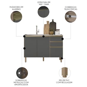 O Balcão de Cozinha Com Pia Inox 120cm Maly N03 Carvalho/Grafite, da Mpozenato em MDF de 15mm com acabamento em pintura UV é uma escolha elegante e funcional para uma Cozinha Moderna.