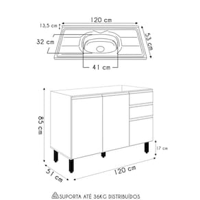 Balcão: 120 cm x 85 cm x 51 cm.