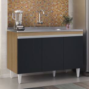 O Balcão de Cozinha Com Pia Inox 120cm Manu Preto/Amêndoa, da AJL Móveis é a combinação perfeita de funcionalidade e estilo para qualquer cozinha.