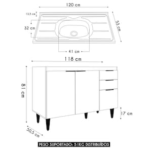 Conteúdo da Embalagem: 1 Balcão, 1 Pia Inox.