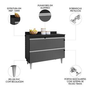 O Balcão de Cozinha Com Tampo 100cm Julia Z34 Preto/Grafite, da Mpozenato é uma escolha excelente para quem busca otimizar o espaço com estilo e funcionalidade.