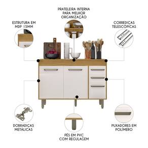 Balcão de Cozinha Com Tampo 120cm Emily Freijó/Off Acetinado Z44 - Mpozenato