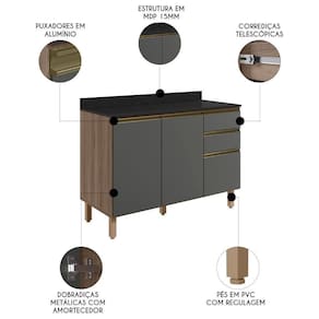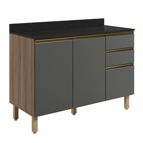 O Balcão de Cozinha Com Tampo 120cm Maly N03 Carvalho/Grafite, da Mpozenato em MDF de 15mm com acabamento em pintura UV é uma escolha elegante e funcional para uma Cozinha Moderna.