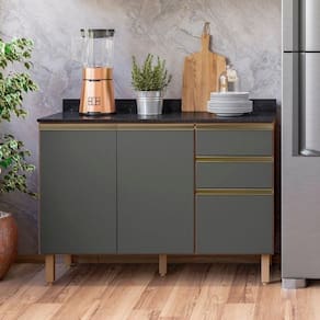 O Balcão de Cozinha oferece duas portas com dobradiças metálicas e amortecedores integrados, garantindo um fechamento suave e silencioso. Além disso, conta com três gavetas espaçosas, incluindo um gavetão, todas equipadas com corrediças metálicas telescópicas que proporcionam uma abertura e fechamento suaves. Os puxadores em alumínio adicionam um toque de sofisticação ao design do Balcão Gabinete, enquanto os pés em PVC reguláveis permitem o ajuste perfeito à altura desejada, assegurando estabilidade mesmo em pisos irregulares. O Balcão ainda possui um tampo para auxiliar no preparo das refeições ou até para apoiar seus eletrodomésticos, ideal para quem busca qualidade, durabilidade e um visual refinado na organização da Cozinha.