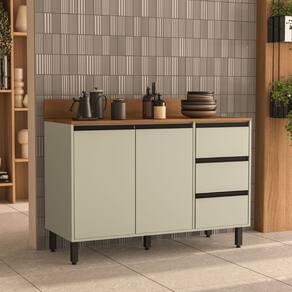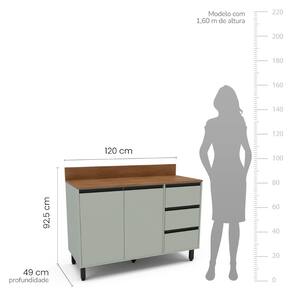 Balcão de Cozinha com Tampo 2 Portas e 3 Gavetas 120cm Koya Verde Oliva Politorno Móveis