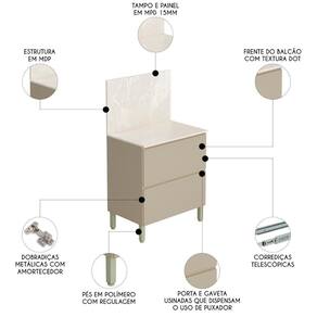 Produzido em MDP de 12 e 15mm, o Balcão Com Tampo conta com uma prateleira interna que otimiza o espaço. Sua textura dot deixa a peça ainda mais impecável permitindo combinações com diferentes estilos de decoração. A porta possui pistão a gás que proporciona uma abertura suave e controlada, além de maior segurança e comodidade no uso diário. Já as dobradiças metálicas com amortecedor permitem um fechamento sem impactos, prolongando a vida útil do movimento. As corrediças telescópicas possibilitam acesso total à gaveta. O Balcão de Cozinha pode ser utilizado de duas formas, como balcão com tampo ou balcão para cooktop de 4 e 5 bocas, nesse caso deve ser feito o recorte de acordo com o tamanho do seu eletrodoméstico. O acabamento em pintura UV garante maior resistência ao desgaste, mantendo o móvel com aparência de por muito mais tempo. Os pés são reguláveis, perfeitos para corrigir pequenos desníveis de piso. Excelente para deixar sua Cozinha mais bonita e organizada!