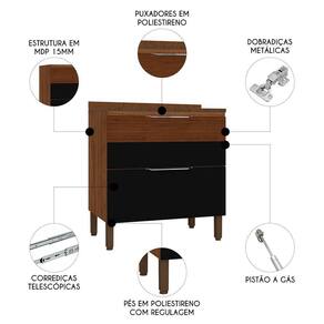 A Cozinha é o coração da casa, e um ambiente acolhedor e funcional torna os momentos em família ainda mais agradáveis. O Balcão de Cozinha Com Tampo 80cm Dora Z06 Nogueira/Preto, da Mpozenato é a escolha perfeita para renovar esse espaço tão especial. Esse Balcão conta com uma porta basculante equipada com dobradiças metálicas, puxadores em poliestireno e pistão a gás, que garantem uma abertura controlada e um fechamento sem impactos. O gavetão possui corrediças telescópicas, proporcionando suavidade no uso e acesso total ao conteúdo interno, além de amplo espaço para acomodar utensílios, como panelas, louças e muito mais, mantendo tudo sempre organizado de forma eficiente. O Balcão de Cozinha é fabricado em MDP 15mm e apresenta acabamento em pintura fosca texturizada na estrutura e acetinada nas portas, com secagem realizada por luzes UV, que conferem um toque sofisticado e um visual moderno. O tampo serve como apoio para eletrodomésticos ou no preparo de alimentos, ele acompanha rodatampo, que é um excelente acabamento entre o balcão e a parede. Os pés, também em poliestireno, são reguláveis, permitindo ajustar pequenos desníveis de piso e manter a estabilidade do produto. Não perca tempo, adicione ao seu carrinho agora mesmo! Especificações Dimensões dos Produtos (L x A x P)Balcão: 80 cm x 84,5 cm x 51,8 cm. Tampo: 80 cm x 9,5 cm x 53 cm. Peso: 34,2 Kg. **ACOMPANHA TAMPO 80CM. Características do ProdutoMaterial da Estrutura: MDP 15mm. Material do Fundo: HDF 3mm. Peso Suportado: 43 Kg distribuídos. Acompanha Pia: Não. Acompanha Tampo: Sim. Acabamento: Texturizado/Pintura UV. Escala de Brilho: Fosco/Acetinado. Possui Portas: Sim. Quantidade de Portas: 1 Porta. Tipo de Porta: Basculante. Possui Pistão a Gás: Sim. Material das Dobradiças: Metálicas. Possui Gavetas: Sim. Quantidade de Gavetas: 1 Gaveta. Material das Corrediças: Telescópicas. Possui Puxador: Sim. Material do Puxador: Poliestireno. Possui Prateleiras: Não. Possui Pés: Sim. Quantidade de Pés: 4 Pés. Material dos Pés: Poliestireno. Altura dos Pés: 15cm com regulagem. Diferenciais:- Design moderno. - Porta basculante. - Pistão a gás. - Gaveta com corrediças telescópicas. - Pés com regulagem de 15 à 17cm. Sistema de Montagem: Cavilhas/Parafusos. Manual de Montagem: Sim. Complexidade da Montagem: Média. Volumes: 3 Volumes. Conteúdo da Embalagem: 1 Balcão, 1 Tampo. do Fabricante: 90 dias contra defeito de fabricação. Montagem: Recomendamos que seja feita por um . Recomendação de Limpeza: Utilize pano úmido. Observações importantes:- Produto para uso residencial em ambiente interno, não devendo ficar exposto diretamente ao sol, calor e umidades excessivas.- Pode haver alguma diferença de tonalidade entre a imagem e o produto real, por conta do tratamento de imagens e a calibração de cores do seu monitor.- As imagens são meramente ilustrativas, não acompanham objetos de decoração e eletrônicos.- Confira o estado da embalagem, não devendo assinar o comprovante em caso de danos.- Não asseguramos, no ato da , por subir escadas/elevadores, pelo transporte por guincho em apartamentos ou montagem, desmontagem e instalações. Eventuais despesas são por conta do comprador.- Confira as dimensões do produto e certifique-se de que passará normalmente por supostos elevadores, portas, escadas e/ou corredores de sua residência.