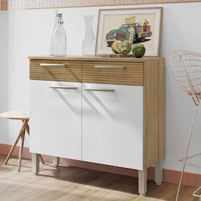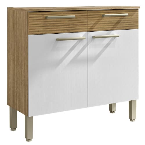 Composto por duas portas convencionais e duas gavetas, o Balcão de Cozinha oferece amplo espaço interno para acomodar utensílios, talheres, mantimentos e outros itens de sua preferência, mantendo tudo organizado de forma eficiente. O Tampo serve como apoio para eletrodomésticos e também confere um acabamento elegante ao Balcão.