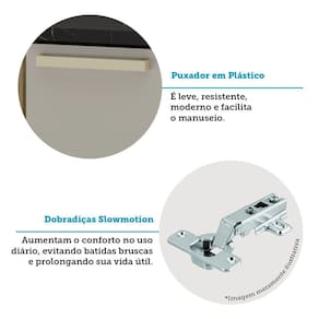 Caracteristicas Estrutura: MDP 15mm Acabamento da Caixaria/Corpo: PF Acabamento das Portas/Frontal: Laca Quantidade de Portas: 1 Tipo de Dobradicas: Metalicas 35mm Slow Motion Quantidade e Tipo de Puxadores: Aste em Plastico Gold Quantidade de Prateleiras: 1 Sistema de Montagem: Cavilhas e parafusos. do Fabricante: 3 meses