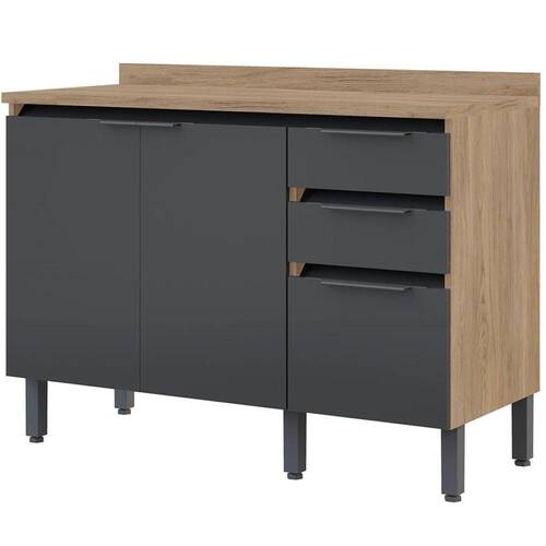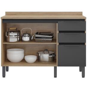 O Balcão Hibisco, da marca Thela, possui um apelo estético inovador: molduras inclinadas e discretos puxadores slim em alumínio. O móvel é fabricado com acessórios de alta qualidade. Além disso, tem gavetas com corrediças telescópicas de abertura integral e divisor de talheres. Esse módulo foi projetado com um gavetão inferior de laterais e fundo , que permite otimizar o espaço para acomodar mantimentos e utensílios de maneira ideal.
