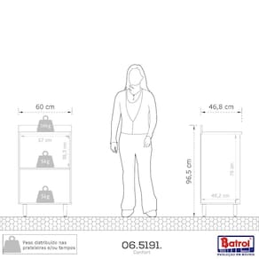 Dimensões: Altura -com pés-: 96 cm | Largura: 60 cm | Profundidade: 46 cm