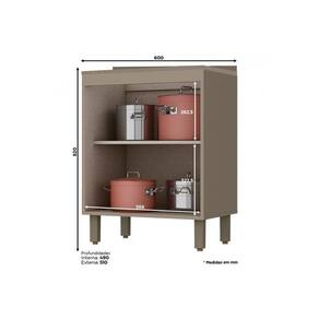Balcão de Cozinha Connect c/ 2 Portas s/ Tampo 60cm Duna/Cristal - Henn