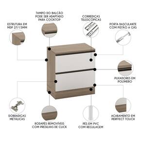 Balcão de Cozinha Cooktop 80cm Grace Carvalho Oak/Off White Z44 - Mpozenato