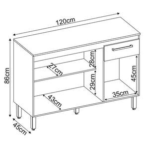 O Balcão de Cozinha Dama é prático e funcional, foi projetado para usar em diversos ambientes e funcionalidades, organize a sua cozinha, área de serviço, etc. Com ampla gaveta com corrediça metálica e puxadores cor champanhe, 3 portas com prateleira interna e ainda possui pés com regulagem de altura. Não perca tempo para embelezar ainda mais seu ambiente com este produto versátil.